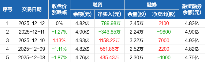 铁龙物流:融资净偿还789.98万元,融资余额4.82亿元(12-12)