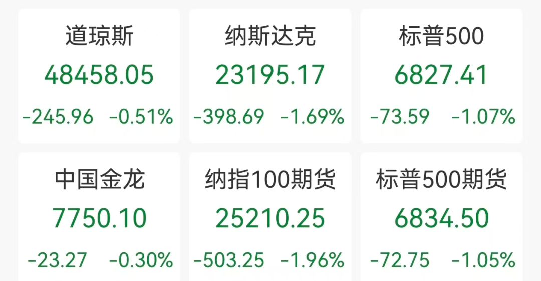 美东时间周五,美股科技股重挫,中概股普跌。黄金突破4300美元后急跌,白银跳水。加密货币市场多数下跌,超11万人被爆仓。