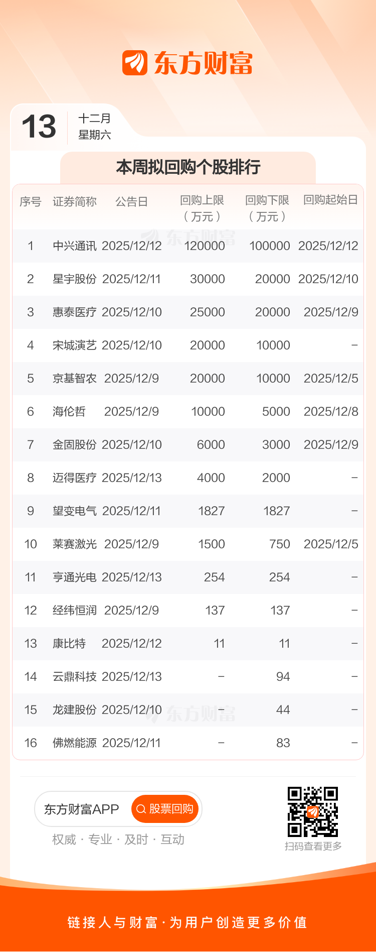 本周有16家公司宣布回购计划,按拟回购金额上限统计,计划回购金额23.87亿元。其中中兴通讯拟回购金额上限最高,为12.00亿元。