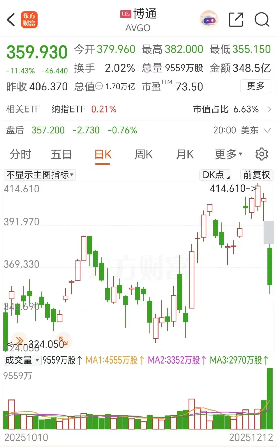 博通周五收盘大跌超11%,消息面上,虽然公司公布2025财年营收达640亿美元,并提到730亿美元的人工智能积压订单,但股价因公司对人工智能业务毛利率较低及缺乏2026财年人工智能预测的评论而下跌。