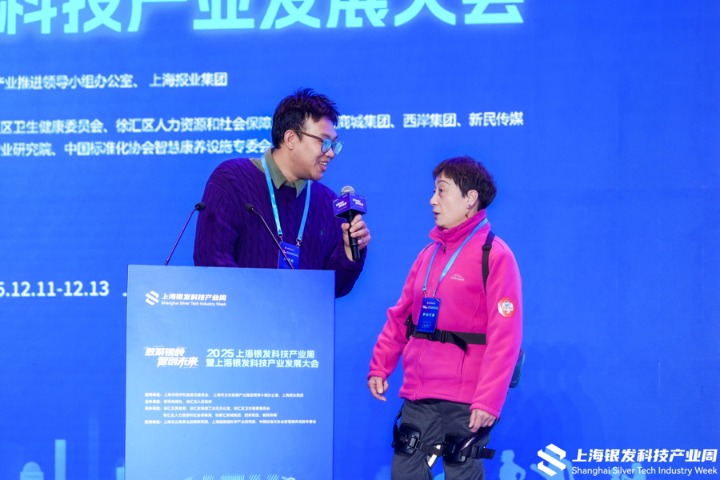 乔晨提出,康养解决方案融入在一个个生活细节中。活动现场,他还展示了海尔的第二代外骨骼机器人,并邀请“银发科技产业体验官”上台试用。像背书包一样挎上两边的背带,再分别系好双腿的绑带,大约1分钟,整套设备便穿戴完成。体验官方阿姨告诉新民晚报记者,今年64岁的她平时抬腿有点困难,穿上后效果明显,“走路老轻松了”。