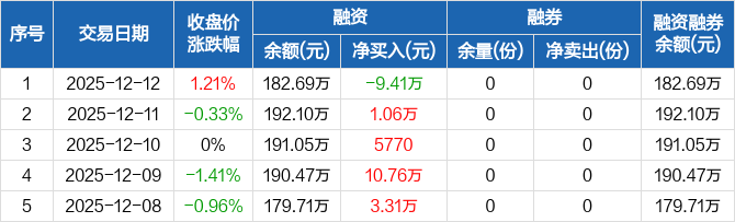 恒生中国企业ETF:融资净偿还9.41万元,融资余额182.69万元(12-12)