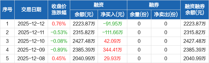 中证A50指数ETF:融资净偿还91.95万元,融资余额2223.87万元(12-12)