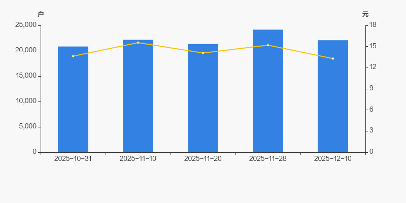 2025年10月31日至今,公司股东户数有所增长,区间涨幅为5.94%。2025年10月31日至2025年12月10日区间股价下降2.49%。