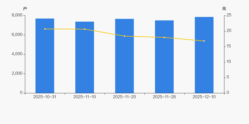 2025年10月31日至今,公司股东户数有所增长,区间涨幅为2.16%。2025年10月31日至2025年12月10日区间股价下降18.78%。