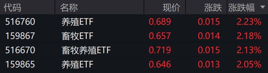 受盘面影响,畜牧养殖相关ETF涨超2%。