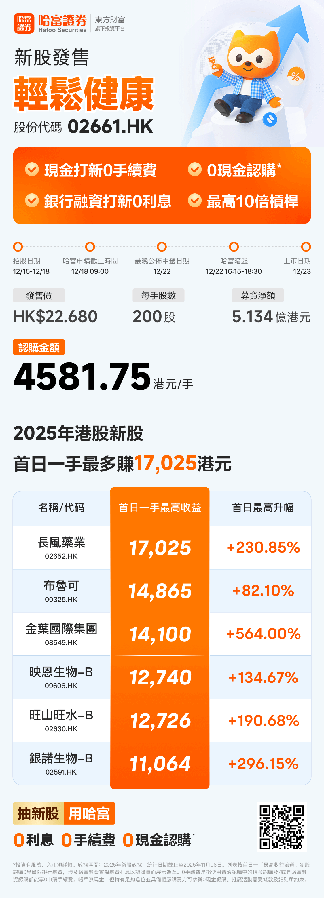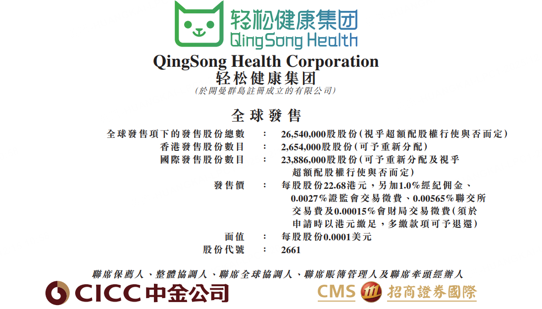 12月15日, 轻松健康发布公告,于12月15日-12月18日招股,公司拟全球发售约2654万股股份,预期将于12月23日上市。