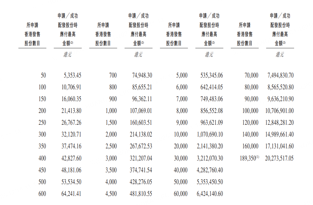 乙组门槛为5万股,申购所需资金约535.34万港元。
