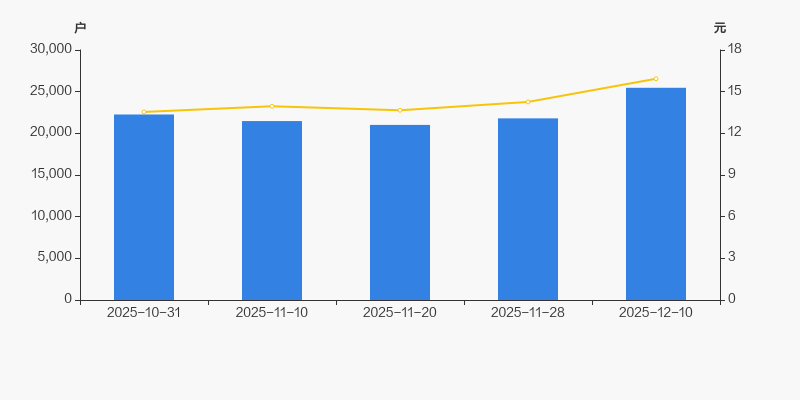 2025年10月31日至今,公司股东户数显著增长,区间涨幅为14.40%。2025年10月31日至2025年12月10日区间股价上涨17.65%。