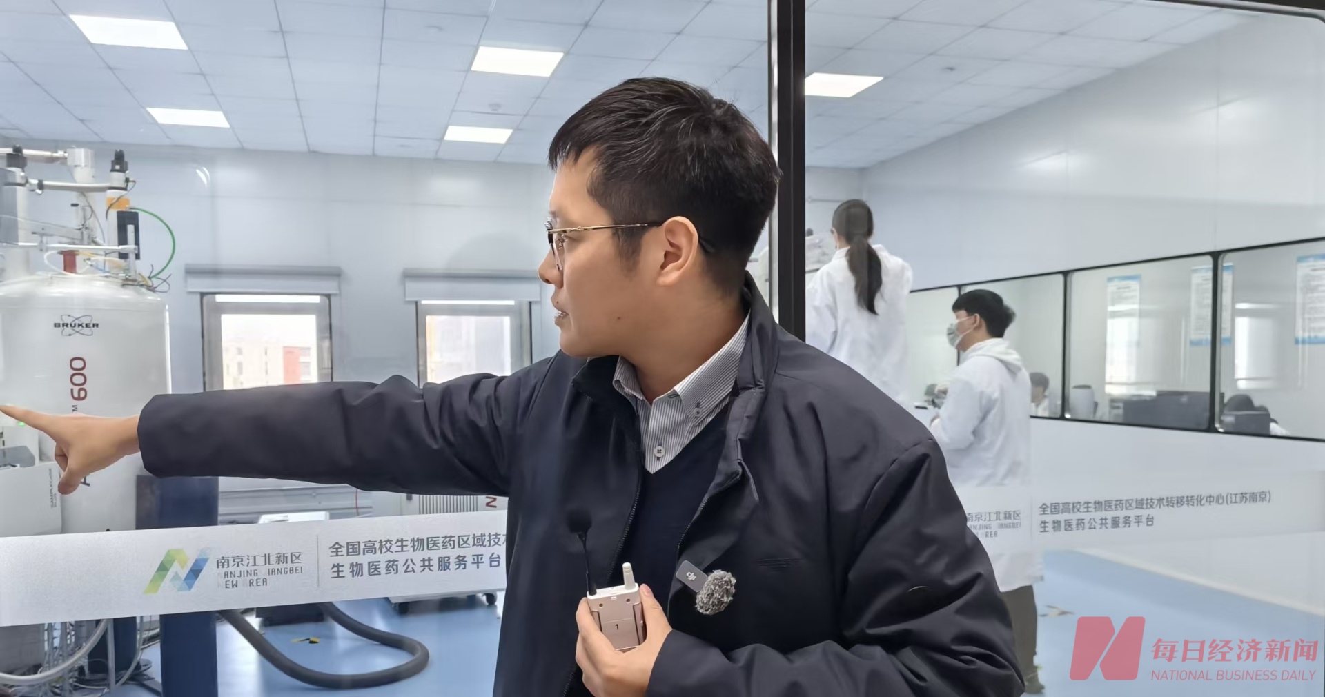 “这个是核磁共振波谱仪,解析分子结构的。”透过玻璃,工作人员指着实验室内一个比人还高的银色钢罐介绍道。