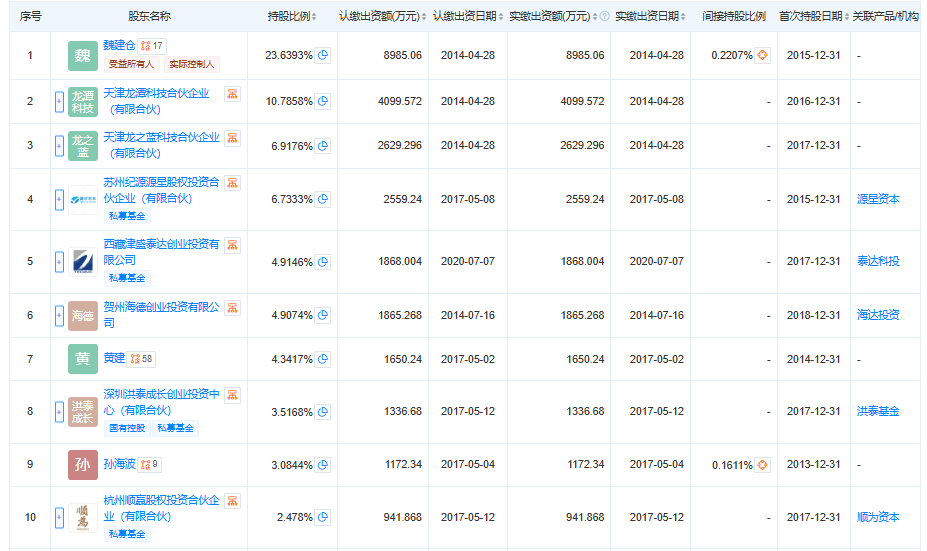 股权结构方面,工商信息显示,深之蓝股东方多达43家,目前无控股股东,第一大股东为魏建仓,直接持股23.64%,为该公司实际控制人。此外,深之蓝前十大股东包括苏州纪源源星股权投资合伙企业(有限合伙)、西藏津盛泰达创业投资有限公司、贺州海德创业投资有限公司、深圳洪泰成长创业投资中心(有限合伙)、杭州顺赢股权投资合伙企业(有限合伙),持股比例分别为6.73%、4.91%、4.91%、3.52%、2.48%。