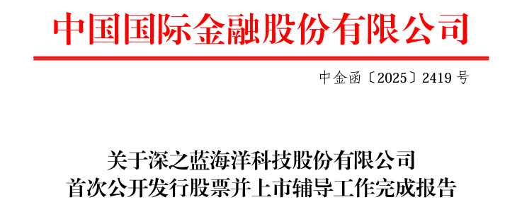 《科创板日报》12月15日讯(记者陈俊清)近日,证监会辅导公示系统显示,有着“水下大疆”称号的深之蓝海洋科技股份有限公司(下称:“深之蓝”)IPO辅导状态变更为辅导验收,辅导机构为中金公司。