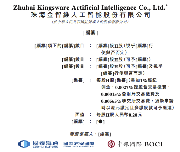 据港交所文件,12月15日,珠海金智维人工智能股份有限公司向港交所提交上市申请书,联席保荐人为国泰海通、中银国际。