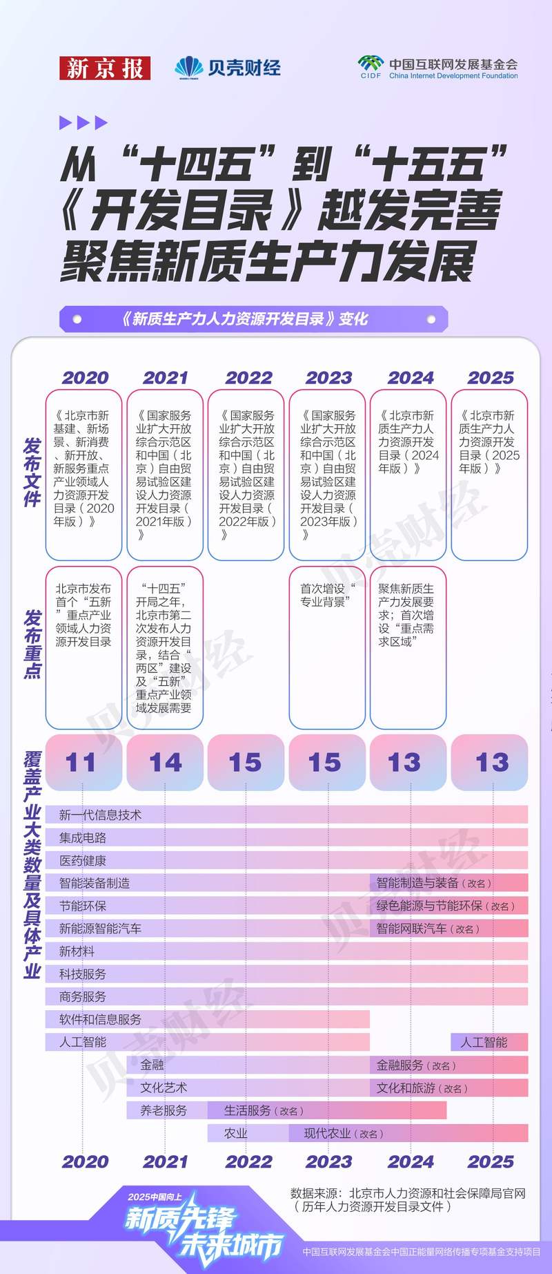 2024年目录升级为《新质生产力人力资源开发目录》,并在2025年继续更新。从设定人才需求评级,到增设重点需求专业及重点需求区域,目录体系逐步完善,已成为北京人才供求市场的重要“晴雨表”。
