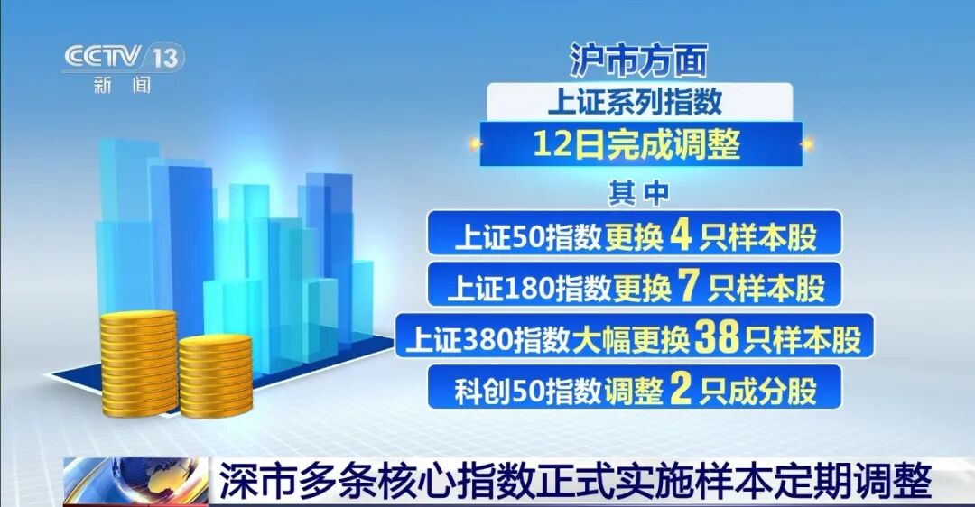 沪市方面,上证系列指数12日完成调整,其中上证50指数更换4只样本股,上证180指数更换7只,上证380指数大幅更换38只,科创50指数则调整2只成分股。