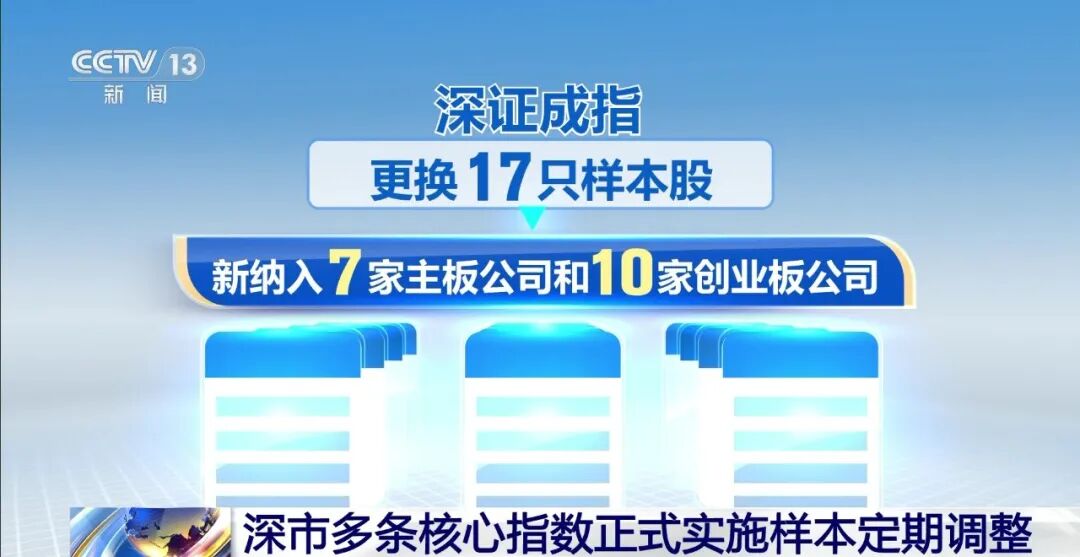 根据深交所及深圳证券信息有限公司发布的公告,深市多条核心指数15日正式实施样本定期调整。其中,深证成指更换17只样本股,新纳入7家主板公司和10家创业板公司,创业板指、深证100、创业板50等指数也同步完成成分股更新。