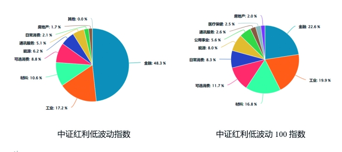 中证红利低波动指数与中证红利低波动100指数行业分布(Wind一级行业) 数据来源:Wind数据库,中证金融研究院整理