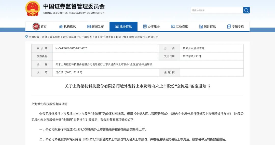 12月15日,中国证监会官网显示,上海壁仞科技股份有限公司(以下简称“壁仞科技”)获得境外发行上市备案通知书,壁仞科技拟发行不超过372458000股普通股,并在香港联合交易所上市。若成功发行上市,壁仞科技有望成为“港股GPU第一股”。