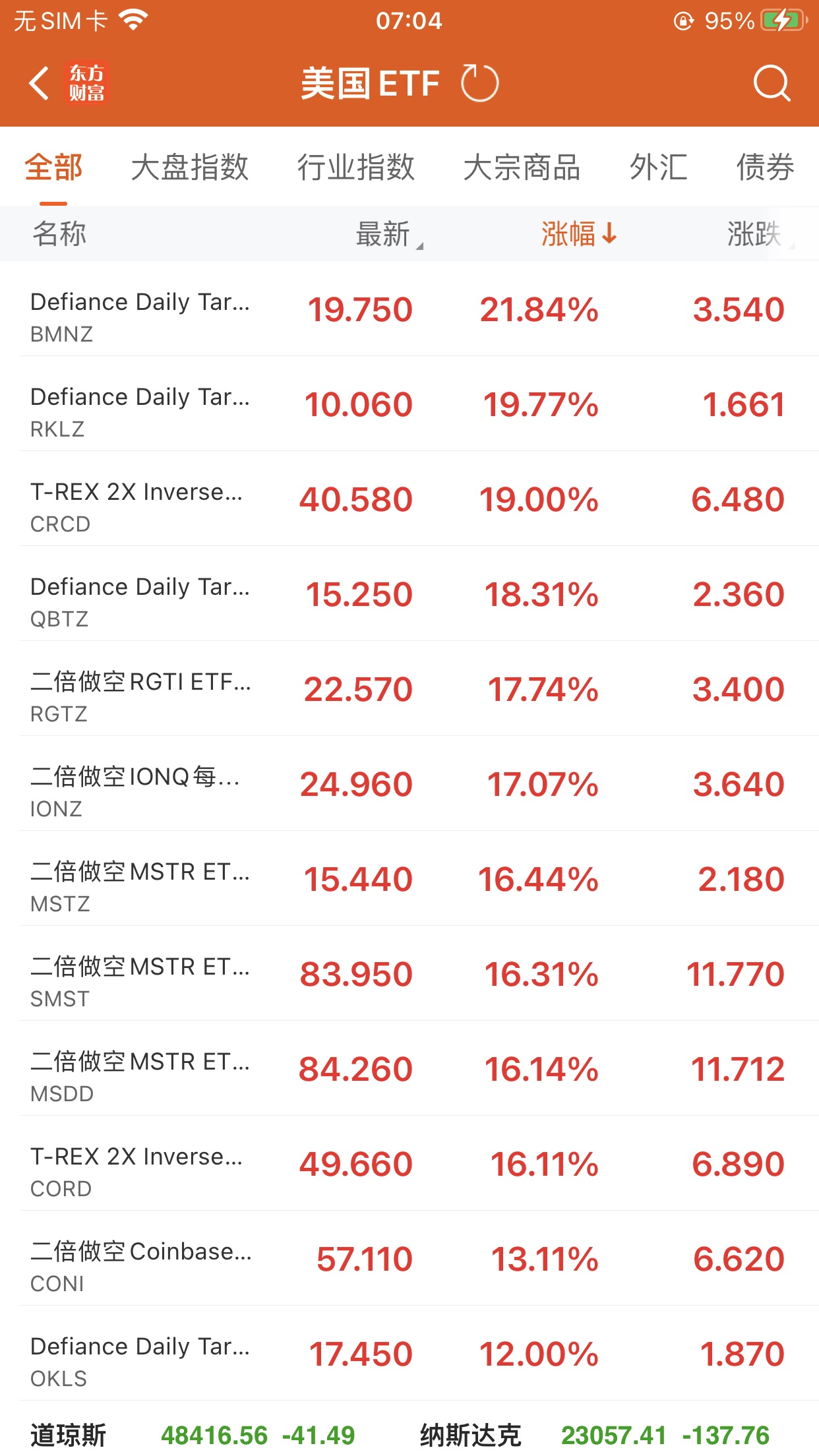 2倍做空RGTI ETF-Defiance(RGTZ.US) 升17.74%,成交额1.05亿美元。
