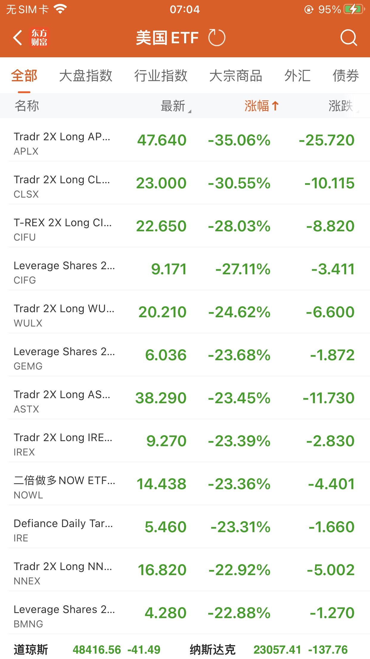 2倍做多APLD ETF-Tradr(APLX.US) 跌35.06%,成交额2562.55万美元。