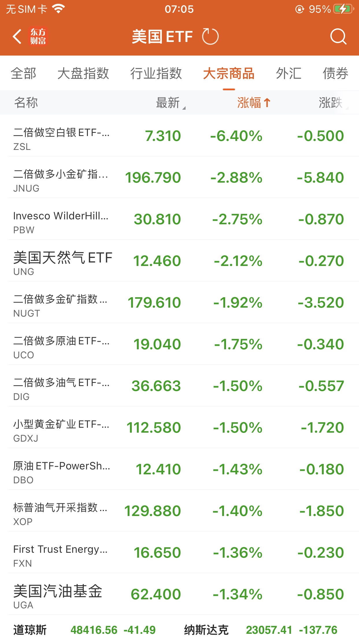 美国天然气ETF(UNG.US) 跌2.12%,成交额2亿美元。