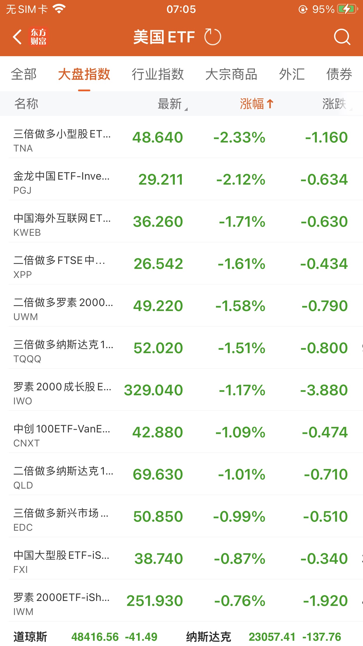 三倍做多小盘股ETF-Direxion(TNA.US) 跌2.33%,成交额5.71亿美元。