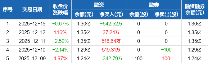 清源股份:融资净偿还542.52万元,融资余额1.3亿元(12-15)
