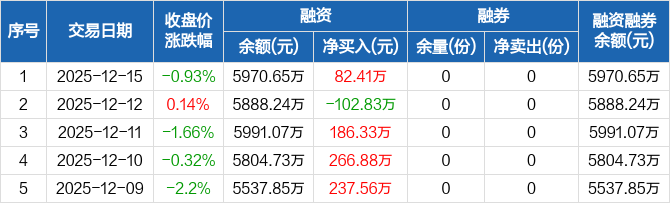 纳指100ETF:融资净买入82.41万元,融资余额5970.65万元(12-15)