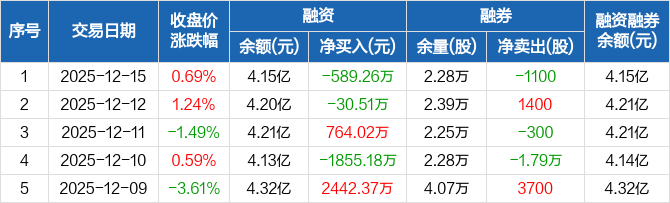 河钢资源:融资净偿还589.26万元,融资余额4.15亿元(12-15)
