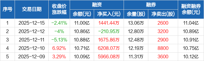 宁波华翔:融资净买入1441.44万元,融资余额11亿元(12-15)