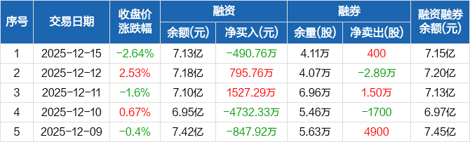 三环集团:融资净偿还490.76万元,融资余额7.13亿元(12-15)