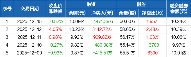 许继电气:融资净偿还1471.39万元,融资余额10.08亿元(12-15)