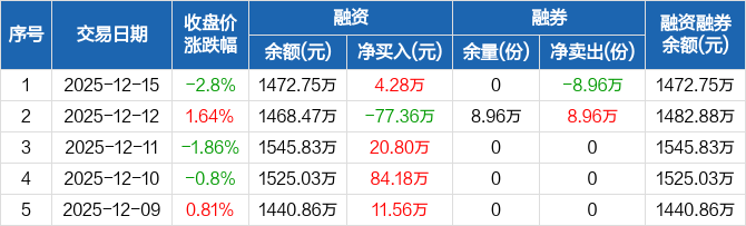电子ETF:融资净买入4.28万元,融资余额1472.75万元(12-15)