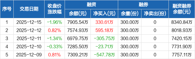 创业50ETF:融资净买入330.61万元,融资余额7905.54万元(12-15)