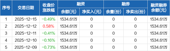 A500指数ETF:融资净买入0元,融资余额1534.61万元(12-15)