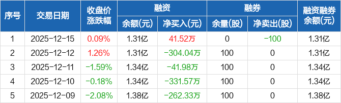 金鹰重工:融资净买入41.52万元,融资余额1.31亿元(12-15)