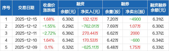 武商集团:融资净买入132.12万元,融资余额6.3亿元(12-15)