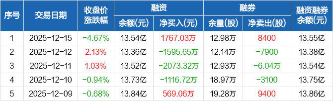 海亮股份:融资净买入1767.03万元,融资余额13.54亿元(12-15)
