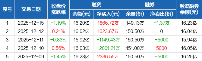 纳指ETF:融资净买入1866.72万元,融资余额16.2亿元(12-15)