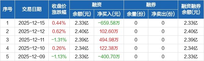 券商ETF:融资净偿还659.58万元,融资余额2.33亿元(12-15)