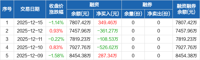 标普ETF:融资净买入349.46万元,融资余额7807.42万元(12-15)