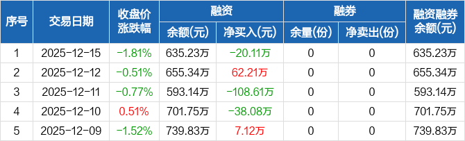 新能源车ETF:融资净偿还20.11万元,融资余额635.23万元(12-15)