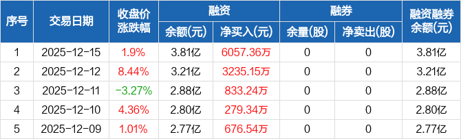 汇成真空:连续5日融资净买入累计1.11亿元(12-15)