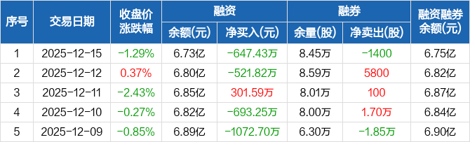 宝通科技:融资净偿还647.43万元,融资余额6.73亿元(12-15)