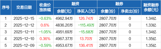 1000ETF:融资净买入126.74万元,融资余额4962.94万元(12-15)