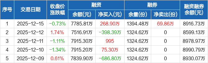 光伏ETF:融资净买入268.9万元,融资余额7785.81万元(12-15)