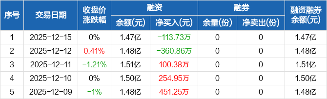 医疗器械ETF:融资净偿还113.73万元,融资余额1.47亿元(12-15)