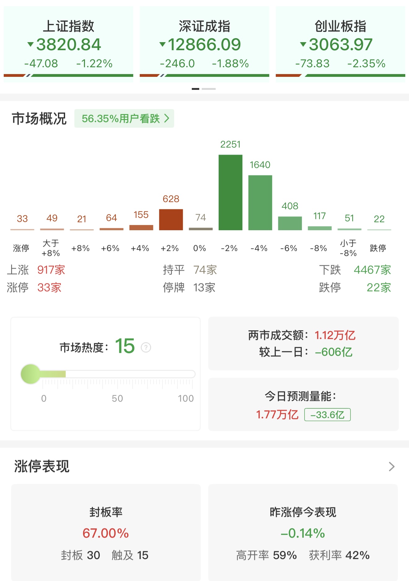 财联社12月16日电,市场早盘震荡调整,沪指、深成指跌超1%,创业板指跌超2%。沪深两市半日成交额1.12万亿,较上个交易日缩量606亿。全市场超4400只个股下跌。从板块来看,零售概念反复活跃,百大集团4连板,红旗连锁、广百股份双双2连板。智能驾驶概念逆势拉升,浙江世宝、索菱股份等十余股涨停。数字货币概念走强,翠微股份、航天信息涨停。下跌方面,影视院线概念集体大跌,博纳影业2连跌停。海南板块下挫,海南瑞泽跌超9%。板块方面,零售、乳业等板块涨幅居前,贵金属、影视院线、海南等板块跌幅居前。截至收盘,沪指跌1.22%,深成指跌1.88%,创业板指跌2.35%。