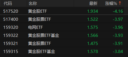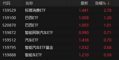 ETF午盘:标普消费ETF涨2.78% 黄金股ETF跌4.16%