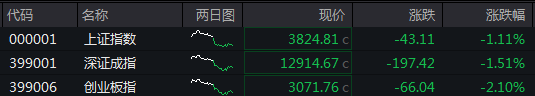 收盘丨A股三大指数均跌超1%,市场近4300股下跌